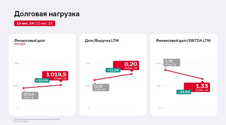 В 2024 году «НЗРМ» приступил к выплате частичных досрочных погашений номинальной стоимости облигаций выпуска НЗРМ-БО-01, размещённого в 2022 году, что указывает на грамотную долговую политику. Общая сумма амортизационных выплат составила 24 млн руб.
