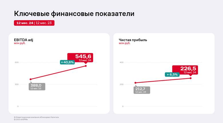 Выручка, валовая и чистая прибыль эмитента выросли на 10,2%, 25,7% и 6,5% соответственно. Значение EBITDA Adj показало более значительную динамику относительно 2023 года на 40,6%.